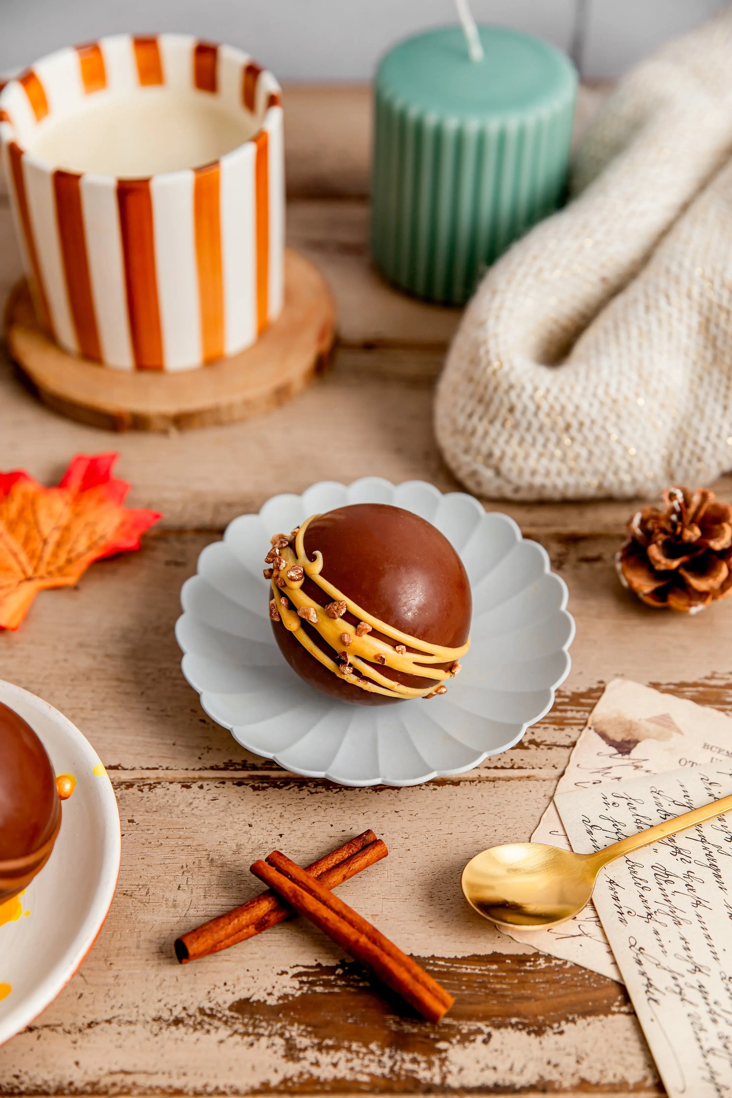 Faites fondre cette bombe dans 250 ml de lait barista chaud (avoine ou soja) et mélangez bien. Vous obtiendrez un chocolat chaud crémeux, parfumé et ultra-réconfortant, idéal pour accompagner vos pauses cocooning.